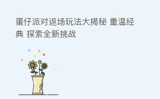 摘要:蛋仔派对返场玩法攻略:重燃激情,再战巅峰随着《蛋仔派对》的不断发展,许多经典玩法和角色都曾一度离场,让众多玩家倍感遗憾。近日官方宣布,这些经典玩法和角色将迎来返场,让玩家们再次感受到那份熟悉的热血与激情。本文将为大家详细介绍《蛋仔派对》返场玩法的攻略,助你轻松应对挑战,再战巅峰!一、经典玩法回顾在《蛋仔派对》中,返场玩法主要包括以下几类:1.经典地图:如“,蛋仔派对返场玩法大揭秘 重温经典 探索全新挑战
