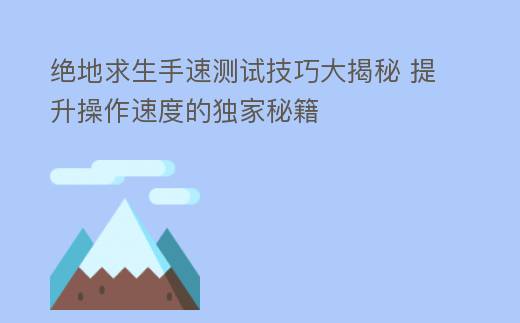 摘要:绝地求生手速测试技巧:提升操作速度的秘籍在《绝地求生》这款竞技游戏中,手速是决定胜负的关键因素之一。手速测试不仅能够帮助你了解自己的操作水平,还能通过针对性的训练提升反应速度和操作技巧。本文将为你详细介绍绝地求生手速测试的技巧,助你在游戏中游刃有余。一、熟悉游戏操作界面在进行手速测试之前,首先要熟悉游戏中的操作界面。了,绝地求生手速测试技巧大揭秘 提升操作速度的独家秘籍