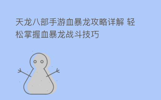 摘要:天龙八部手游血暴龙攻略:轻松掌握,战力飙升在《天龙八部手游》中,血暴龙作为一只强大的BOSS,一直是玩家们挑战的难点。本文将为你详细解析血暴龙的攻略,帮助你轻松战胜这只强大的敌人,提升战力。一、血暴龙技能解析血,天龙八部手游血暴龙攻略详解 轻松掌握血暴龙战斗技巧