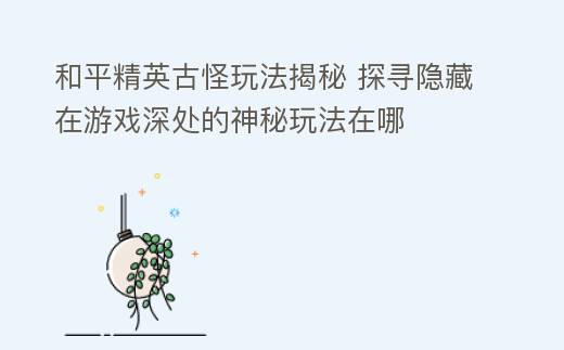 和平精英古怪玩法揭秘 探寻隐藏在游戏深处的神秘玩法在哪
