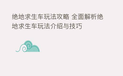 摘要:绝地求生车玩法介绍:驰骋战场,掌控全局在《绝地求生》这款广受欢迎的生存竞技游戏中,车辆不仅是快速移动的代步工具,更是战场上的一大助力。掌握车辆玩法,可以在关键时刻扭转战局,成为战场上的“移动堡垒”。本文将,绝地求生车玩法攻略 全面解析绝地求生车玩法介绍与技巧