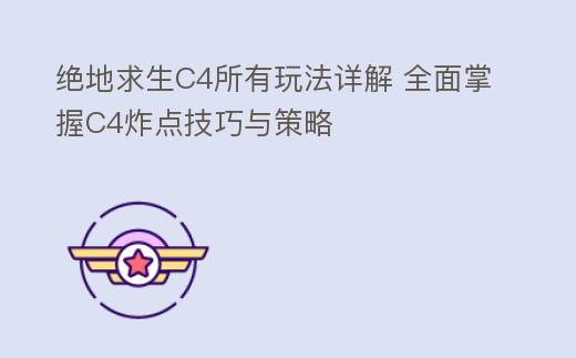 摘要:绝地求生C4所有玩法解析:掌握技巧,掌控战场在《绝地求生》这款风靡全球的射击游戏中,C4炸弹成为了许多玩家争相研究的对象。C4炸弹的运用不仅考验玩家的反应速度,还考验其战术布局。本文将深入解析C4的所有玩法,帮助玩家在战场上更加得心应手。一、C4炸弹的基本使用方法C4炸弹是《绝地求生》,绝地求生C4所有玩法详解 全面掌握C4炸点技巧与策略
