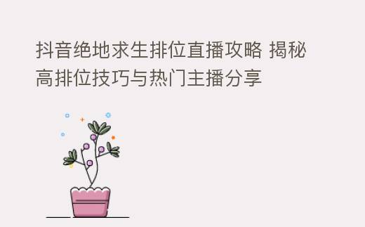 抖音绝地求生排位直播攻略 揭秘高排位技巧与热门主播分享