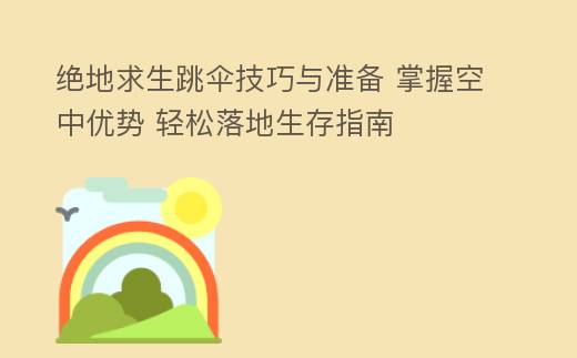 摘要:绝地求生跳伞技巧与准备:空中猎手的生存指南在《绝地求生》这款充满挑战的生存游戏中,跳伞技巧与准备是每位玩家都必须掌握的关键技能。跳伞不仅关乎能否顺利降落至理想的地点,更直接影响到后续的生存与战斗。本文将深入探讨跳伞技巧与准备,助,绝地求生跳伞技巧与准备 掌握空中优势 轻松落地生存指南