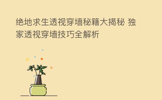 绝地求生透视穿墙秘籍大揭秘 独家透视穿墙技巧全解析