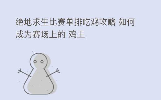 绝地求生比赛单排吃鸡是一场充满挑战的生存之战。通过了解比赛规则、选择合适的降落地点、合理分配资源、掌握战斗技巧以及制定决赛圈策略,相信你能够在比赛中脱颖而出,成为最后的赢家。