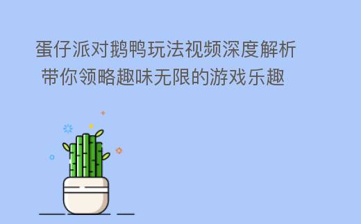 在《蛋仔派对》这款充满趣味与挑战的手机游戏中,鹅鸭玩法无疑是一道亮丽的风景线。通过观看鹅鸭玩法视频,玩家可以轻松上手,体验游戏带来的无限乐趣。本文将为您详细介绍鹅鸭玩法的操作技巧和解决方法,助您在游戏中游刃有余。