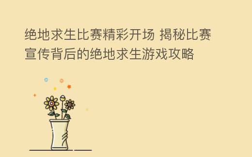 摘要:绝地求生比赛开头宣传:如何抓住观众眼球在竞争激烈的电子竞技领域,一场成功的绝地求生比赛的开头宣传至关重要。这不仅关乎比赛的知名度,更直接影响到观众的参与度和赛事的吸引力。本文将深入探讨如何进行一场绝地求生比赛的开头宣传,帮助你的赛事在众,绝地求生比赛精彩开场 揭秘比赛宣传背后的绝地求生游戏攻略