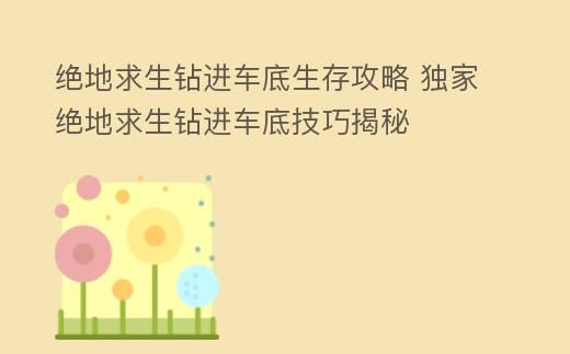 钻进车底是《绝地求生》中一种实用的生存技巧,可以帮助玩家在游戏中更好地躲避敌人。掌握正确的钻车技巧和注意事项,可以让玩家在游戏中更加游刃有余。以下是一些与“绝地求生钻进车底技巧”相关的百度搜索关键词: