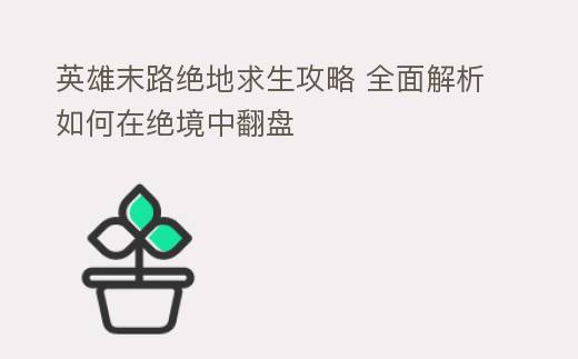 英雄末路绝地求生攻略 全面解析如何在绝境中翻盘