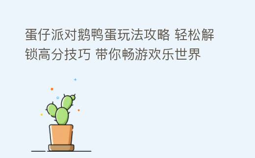 鹅鸭蛋玩法是《蛋仔派对》中的一大亮点,它不仅考验玩家的策略思维,更是一次欢乐的团队协作之旅。通过本文的攻略,相信你已经对鹅鸭蛋玩法有了更深入的了解。现在,就让我们一起加入这场欢乐的冒险吧!