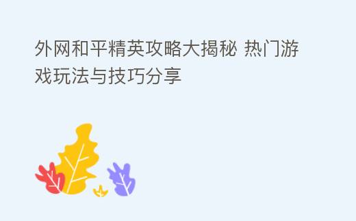 外网和平精英攻略大揭秘 热门游戏玩法与技巧分享