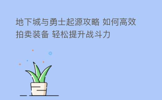 前言:在《地下城与勇士起源》这款游戏中,装备的获取是玩家们关注的焦点之一。而拍卖体系则为玩家提供了一个便捷的装备交易平台。本文将详细介绍地下城与勇士起源该该怎么办办通过拍卖装备,帮助玩家轻松获取心仪的装备。