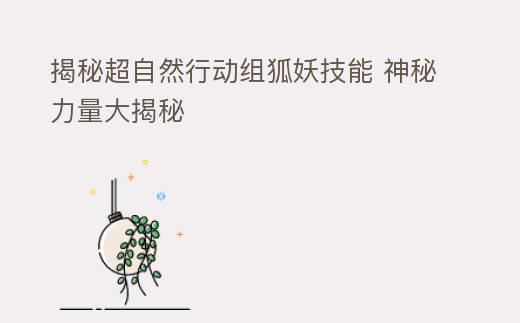 在神秘莫测的奇幻全球中,超天然行动组狐妖技能犹如一颗璀璨的明珠,闪耀着特殊的光芒。这些技能不仅让狐妖们在战斗中如鱼得水,更让玩家们沉浸于这场惊心动魄的冒险之旅。本文将为您揭秘超天然行动组狐妖技能的奥秘,助您在游戏中畅游无阻。