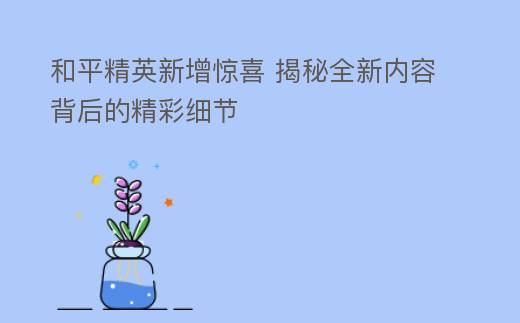 和平精英新增惊喜 揭秘全新内容背后的精彩细节