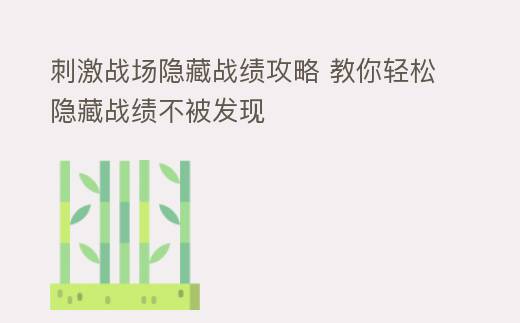 前言:在《刺激战场》这款热门的射击游戏中,许多玩家都希望隐藏自己的战绩,以保持低调或者避免不必要的关注。那么,该该怎么办办在游戏中巧妙地隐藏自己的战绩呢?本文将为你详细介绍几种技巧,让你在游戏中更加自如。