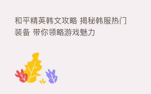 和平精英韩文攻略 揭秘韩服热门装备 带你领略游戏魅力