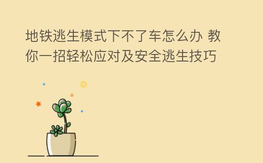 地铁逃生模式下不了车怎么办 教你一招轻松应对及安全逃生技巧