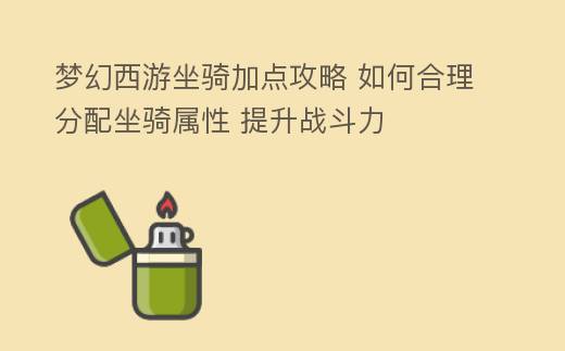 在《梦幻西游》这款经典MMORPG游戏中,坐骑不仅是玩家们展示特点的重要道具,更是提升移动速度和战斗力的关键影响。坐骑的加点,也就是对坐骑属性的提升,是每个玩家都需要掌握的技巧。本文将为你详细解析梦幻西游坐骑加点的技巧和策略,助你轻松提升骑乘体验。