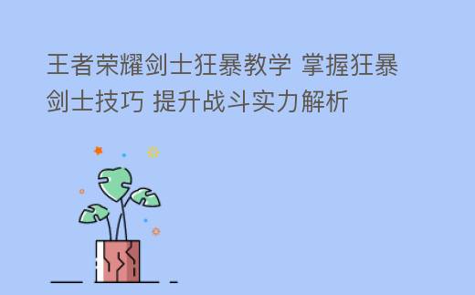 王者荣耀剑士狂暴教学 掌握狂暴剑士技巧 提升战斗实力解析