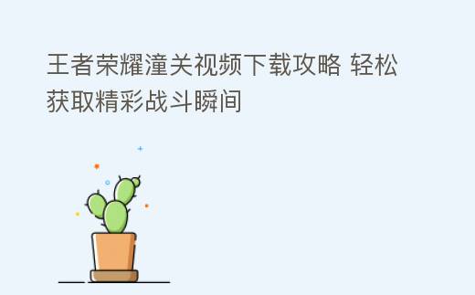王者荣耀潼关视频下载攻略:轻松获取精妙瞬间