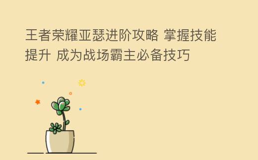 相关搜索词:王者荣耀亚瑟进阶攻略、亚瑟装备搭配、亚瑟走位技巧、亚瑟团战策略、亚瑟实战经验