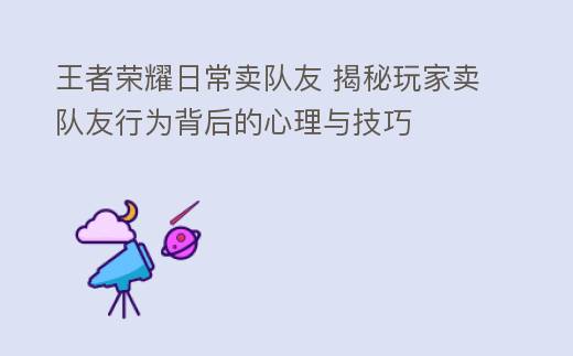 王者荣耀日常卖队友 揭秘玩家卖队友行为背后的心理与技巧
