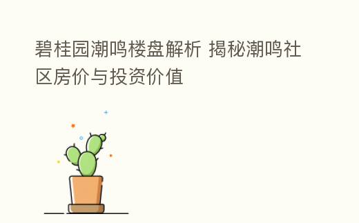 碧桂园潮鸣楼盘解析 揭秘潮鸣社区房价与投资价值