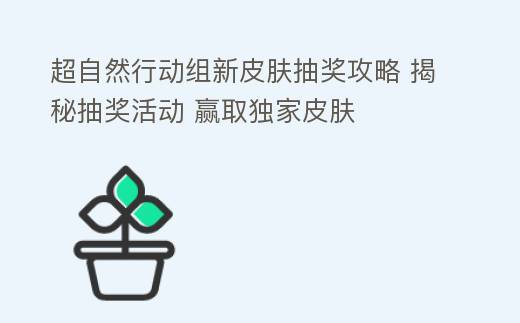 超天然行动组新皮肤抽奖活动通常在游戏更新后不久开启,玩家可以通过参与活动获得抽奖机会。此次抽奖活动将推出多款限定皮肤,包括英雄皮肤、道具皮肤等,让玩家在游戏中展现特点。