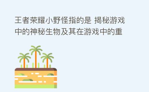 王者荣耀小野怪指的是 揭秘游戏中的神秘生物及其在游戏中的重要性